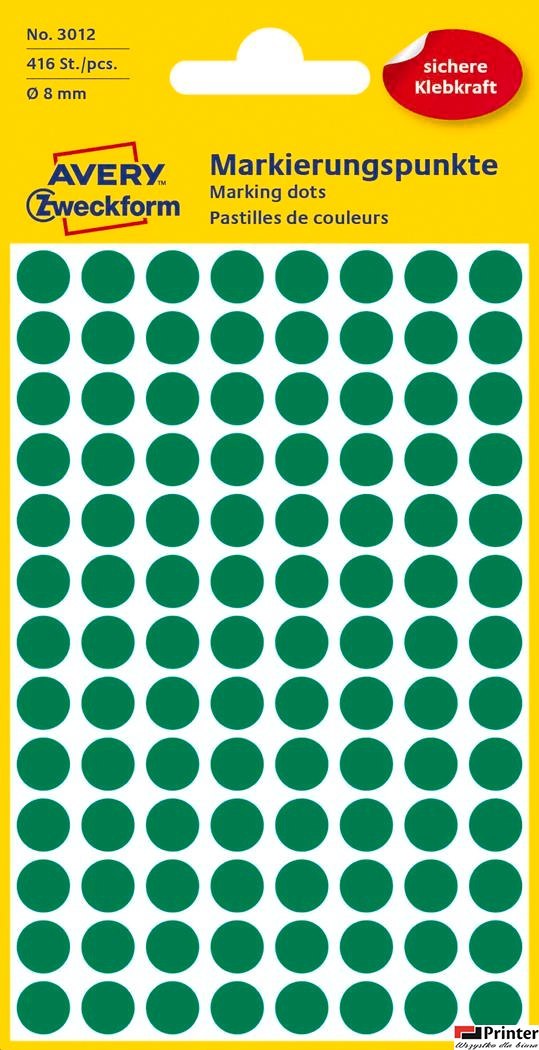 | Nazwa B2B | Trwałe kółka do zaznaczania _8mm, 416szt./op. zielone 3012 Avery Zweckform |