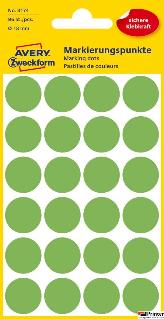 Kółka do zaznaczania zielone neon 3174 Q18 4 ark Avery Zweckform