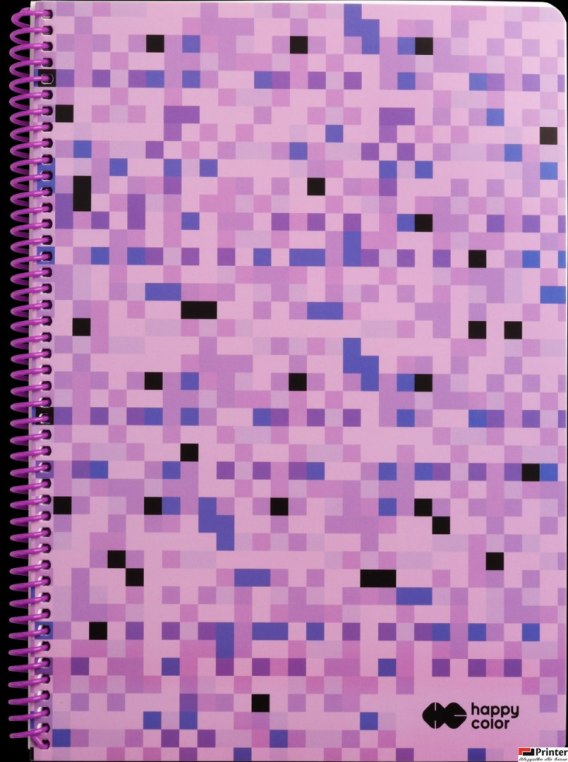 Design inspirowany motywem pikseli w ciekawym zestawieniu kolorystycznym. Sztywna okładka. Spirala dopasowana kolorystycznie do designu okładki. Biały papier 80g w szarą kratkę. 80 kartek. Format: B5 lub A4. 4 szt. w opak. zb.