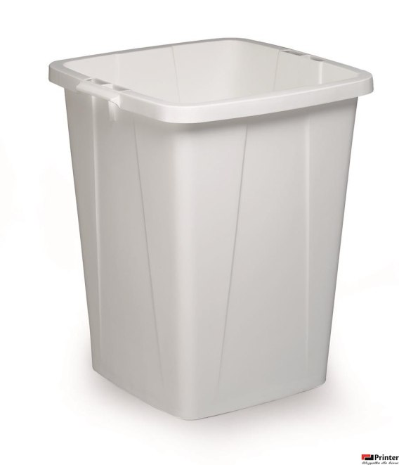 Prostokątny pojemnik o pojemności 90 litrów. Idealny do odpadów i recyklingu. Z mocnymi rączkami ułatwiającymi jego przenoszenie oraz uchwytem na dnie do wygodnego opróżnianie kosza. Szczeliny do zaczepienia worków na śmieci. Przechowywanie żywności możliwe we wszystkich kolorach (zgodnie z rozporządzeniem UE 1935/2004/WE), z wyjątkiem koloru czarnego, ponieważ zawiera granulat z recyklingu. Wymiary: 520 x 610 x 490 mm (szer. x wys. x głęb.)