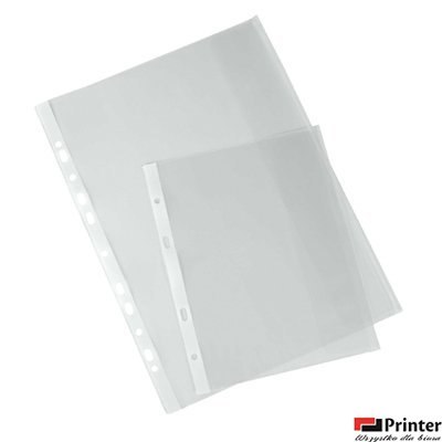 Wykonana z folii groszkowej, z boczną klapką chroniącą przed wypadaniem, format A5, A4 i poszerzony B4, posiada boczną porforację umożliwiającą wpięcie do segregatora, jednostka sprzedaży 1 opakowanie (25 sztuk).