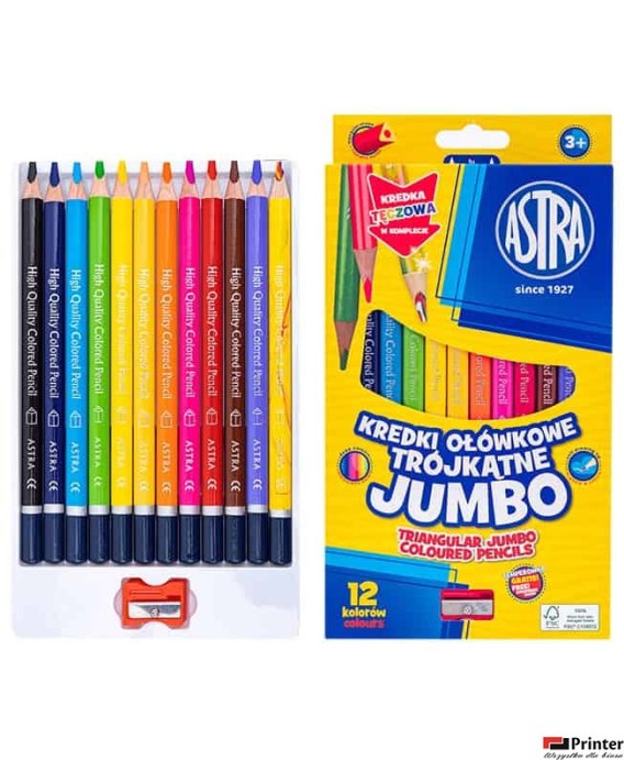 Kredki ołówkowe trójkątne jumbo ASTRA 12 kolorów z temperówką 312023911