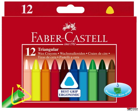 Kredki woskowe Faber-Castell 12 szt. w opakowaniu kartonowym. Przeznaczone dla początkujących młodych artystów, którzy kochają ekspresyjnie rysować po dużych powierzchniach. Doskonałe do przedszkola i szkoły, są bezpieczne dla dzieci. Papierowy rękaw zapewnia, że dłonie dziecka pozostają czyste. Żywe kolory, miękkie w aplikacji i wodoodporne. Odpowiednie do łączenia różnych technik. Ergonomiczny trójkątny kształt zapewnia wysoki komfort użytkowania, niemęczące, wygodne rysowanie i doskonałą zabawę kolorami.
