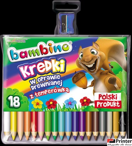 | Katalog_2020naz | Kredki trójkątne BAMBINO w oprawie drewnianej, 18 kolorów + temperówka |
