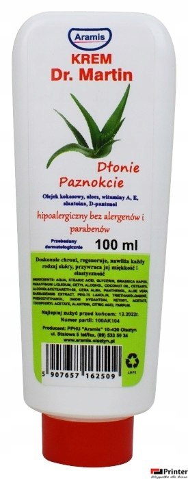 Glicerynowy krem do rąk z wyciągiem z aloesu. Zawiera witaminy A, E, B5, lanolinę, alantoinę oraz olej silikonowy.