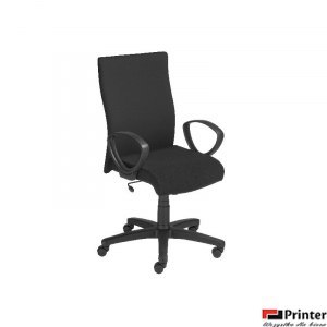 Siedzisko i oparcie tapicerowane pianką i tkaniną welurową lub tkaniną z atestem trudnopalności_mechanizm umożliwiający swobodne kołysanie się, blokadę w pozycji do pracy, regulację siły oporu oparcia_podnośnik pneumatyczny zapewnia płynną regulację wysokości fotela_stałe podłokietniki_stabilna, nylonowa podstawa_kółka do powierzchni dywanowych w standardowej wersji, jako opcja kółka do powierzchni twardych