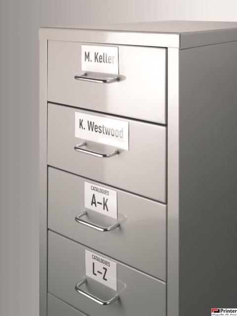 Okienko samoprzylepne do oznakowania koszy zawieszkowych, regałów, szuflad, szaf i urządzeń technicznych. Długość 200 mm, możliwość docięcia na odpowiednią długość. Etykiety w komplecie, które można opisać przy pomocy bezpłatnego programu DURAPRINT_. Wysokość (mm) 30 Wysokość czcionki (mm) 28,5