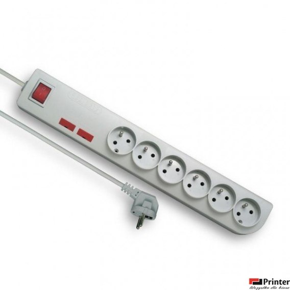 Listwa zasilająca przedłużacz 6 gniazd, 3m, biały, wyłącznik, 2xbezpiecznik, uziemienie PSF2-603