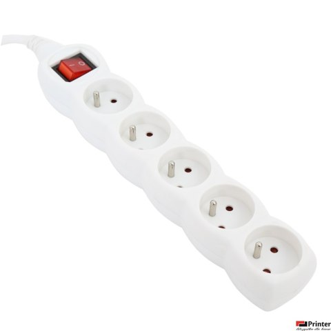 Listwa zasilająca typ E French z 5 gniazdkami z uziemieniem z wyłącznikiem_Długość kabla 3.0m, średnica żyły 1.5mm2_Dostosowane jest do obciążenia prądem do 16A_Osłona bezpieczeństwa przed dziećmi wbudowana w każdym gniaździe_Wysokiej jakości niepalna obudowa z tworzywa sztucznego_Zalecana do komputerów, innych urządzeń biurowych i sprzętu gospodarstwa domowego_kolor biały