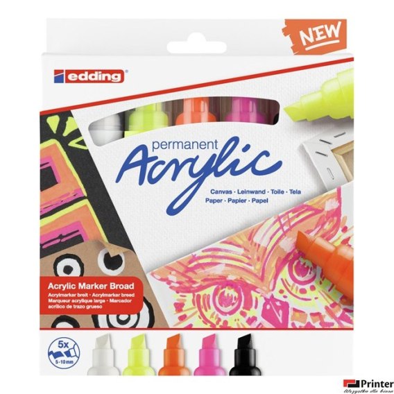 Markery akrylowe 5-10 mm neonowe 5 szt. mix kolorów 5000/5S/NEON Edding