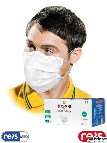 Maseczki medyczne 50szt biała TYP IIR REIS 8%VAT EN14683