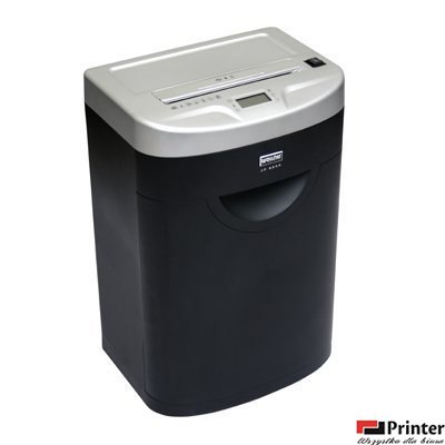 Niszczarka Wallner JP 820S__ szerokość wejścia: 230 mm__ szerokość ścinka: 3,9 mm__ ilość niszczonych kartek (A4/70g): 25__ poziom bezpieczeństwa: 2 DIN__ pojemność kosza: 35 l__ cięcie papieru, kart plastikowych, zszywek, spinaczy, płyt CD _ automatyczny start/stop __ funkcja cofania__ dotykowy panel bezpieczeństwa wstrzymujący pracę urządzenia _ wyświetlacz LCD _ wskazuje włączoną funkcję niszczarki _ zabezpieczenie przed przegrzaniem _ optyczny wskaźnik napełnienia kosza _ obudowa na kółkach _ wymiary: 390x305x645 mm