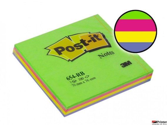 654-RB Bloczek samoprzylepny Post-it_, _- wiosenny, _- sztuka 100 kart, 76x76 mm_- jednostka sprzedazy 1 sztuka