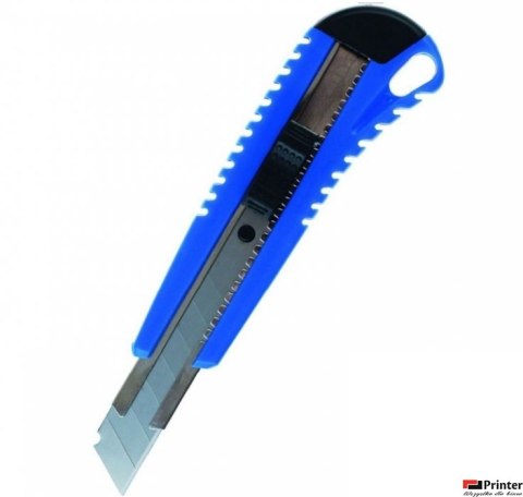 _ obudowa ABS _ metalowa prowadnica _ karbowane brzegi zapewniają lepszy chwyt _ otwór do zawieszania _ wysuwane, łamane ostrze _ samoczynna blokada ostrza _ wymiana ostrza przez zdjęcie czarnej końcówki _ do cięższych prac _ szerokość ostrza: 18 mm _ łamanie ostrza: 7 części