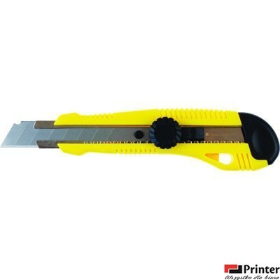 _ obudowa ABS __ metalowa prowadnica __ karbowane brzegi zapewniają lepszy chwyt __ otwór do zawieszania __ wysuwane, łamane ostrze __ blokada ostrza w pokrętle __ wymiana ostrza po wysunięciu czarnej końcówki __ do cięższych prac __ szerokość ostrza: 15 mm__ łamanie ostrza: 7 części