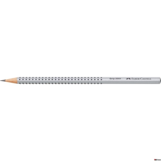 Ołówek grafitowy Grip 2001 Faber-Castell w kolorze srebrnym. Nawet w czasach zdominowanych przez komputery, telefony i internet, ołówek wciąż pozostaje nieodłącznym towarzyszem codzienności. To doskonałe w swojej prostocie narzędzie. Ergonomiczny trójkątny kształt i charakterystyczna dla tej serii opatentowana strefa Grip z małymi, antypoślizgowymi punktami zapewniają wysoki komfort użytkowania i niemęczące, wygodne pisanie i szkicowanie. Odpowiedni również dla leworęcznych. Z odpornym na pękanie grafitem o stopniu twardości 2H, dzięki bezpiecznemu procesowi wiązania (SV). Wykonany z certyfikowanego drewna pochodzącego ze zrównoważonego i odpowiedzialnie zarządzanego leśnictwa. Powierzchnia pokryta lakierem na bazie wody _ bezpiecznym dla środowiska i zdrowia dzieci. Produkcja neutralna pod względem emisji dwutlenku węgla.