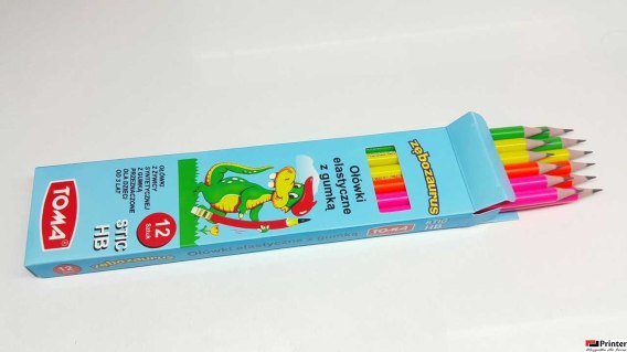 • Ołówki z żywicy syntetycznej ZĘBOZAURUS,HB, kolorowe z gumką, mix TO-002 Toma