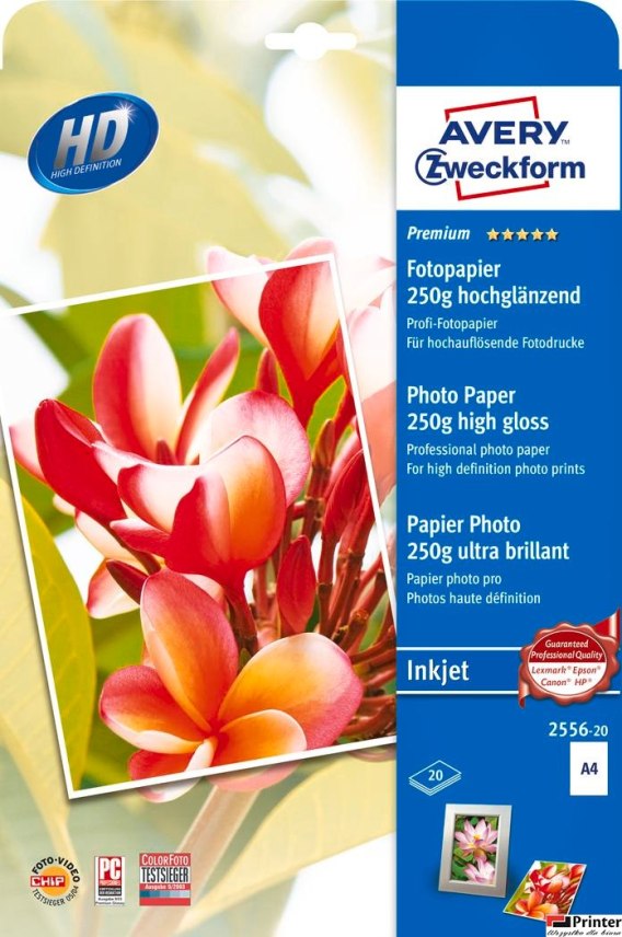 Papier foto wysokobłyszczący 2556-20 A4 20 ark. Premium, biały, 250g, Avery Zweckform (X)