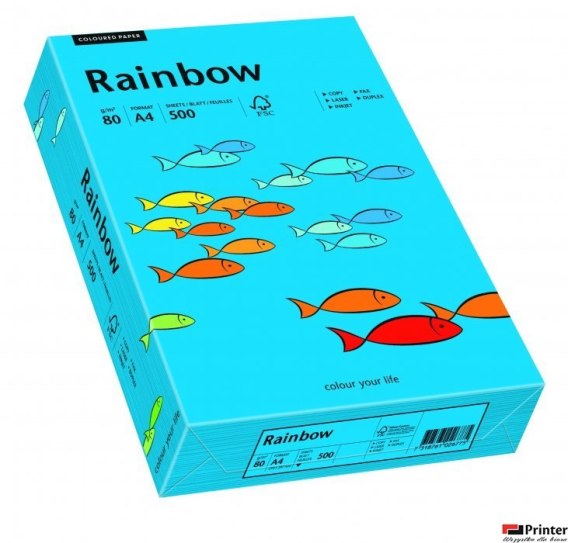 Papier kolorowy Rainbow ciemno niebieski 88_Wysokiej jakości, kolorowy papier, bezdrzewny, barwiony w masie, o szerokim wachlarzu kolorystycznym. Zalecany do wydruków faksowych, korespondencji oraz zaproszeń i ulotek. Pakowany w eleganckie przezroczyste opakowanie. A4 80 g kolor intensywny_- jednostka sprzedaży 1 ryza