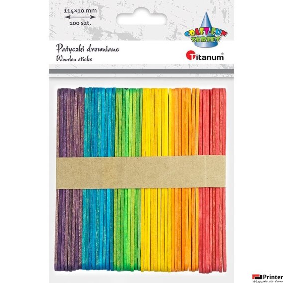 Patyczki drewniane mix kolorów (100) 11,4cm 361574 TITANUM 50 kolorowych + 50 naturalnych