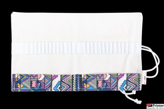 Piórnik zwijany z miejscem na 24 przybory plastyczne. _Piórnik wykonany jest z trwałego materiału. Po zwinięciu zajmuje bardzo mało miejsca. _Doskonale zabezpiecza przybory plastyczne przed uszkodzeniem._Właściwości:_- idealny na kredki, ołówki, zakreślacze, pędzle, długopisy itp._- miejsca na artykuły wykonane są z elastycznej taśmy (pomieszczą różne średnice kredek)_- piórnik zamknięty jest na gruby, pleciony sznurek