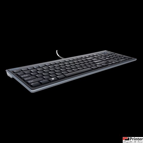 Czułe klawisze przeniesione z laptopów zapewniają dokładność_pełnowymiarowa klawiatura z klawiszami skrótu (skrzynki odbiorczej i innych popularnych programów) zwiększających produktywność_klawisze o obniżonym skoku o wysokości 19 mm_kabel z końcówką USB o długości 190 cm_Plug & Play, podłącz i korzystaj z urządzenia bez instalowania zbędnych sterowników_zaprojektowana do użytku codziennego_możliwość ustawienia pod katem 30 stopni_matowe i błyszczące wykończenie_kolor: czarny