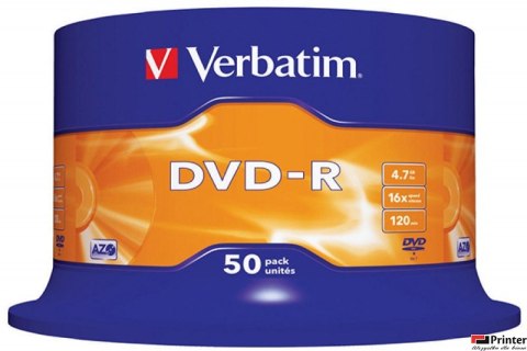 | Nazwa B2B | Płyta VERBATIM DVD-R cake box 50 4.7GB 16x Matt Silver |