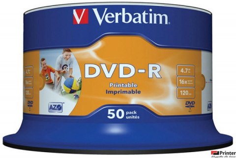 Płyta DVD-R VERBATIM CAKE (50) Printable nadruk Wide 4.7GB x16 43533