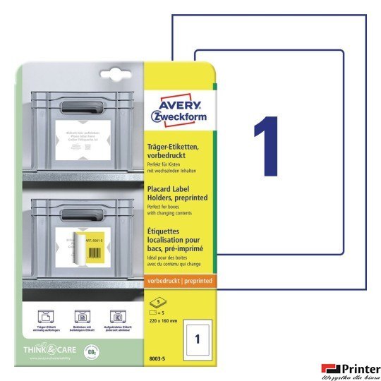 Podkładki pod etykiety, 220 x 160 mm, 5 ark. (już z nadrukiem), Avery Zweckform 8003-5