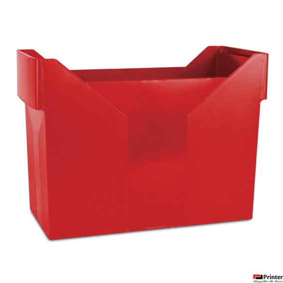 Wykonane z odpornego na pęknięcia tworzywa sztucznego_mieści 20 teczek zawieszkowych lub 3 segregatory A4/50_wygodne w użytkowaniu_cechuje się wysokimi walorami użytkowymi_charakteryzuje się stabilnym i funkcjonalnym mocowaniem teczek_kompatybilne ze standardowymi szufladami archiwizacyjnymi_górne krawędzie wyprofilowane w kształt rączek ułatwiających noszenie_waga: 950g_wymiary: 330x260x160mm_kolor czerwony
