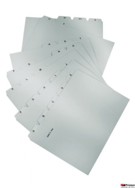 Wykonane z PP, przeznaczone do kartotek A4_do oddzielania kart umieszczonych poziomo_ilość przekładek: 25_indeks: A-Z_kolor szary