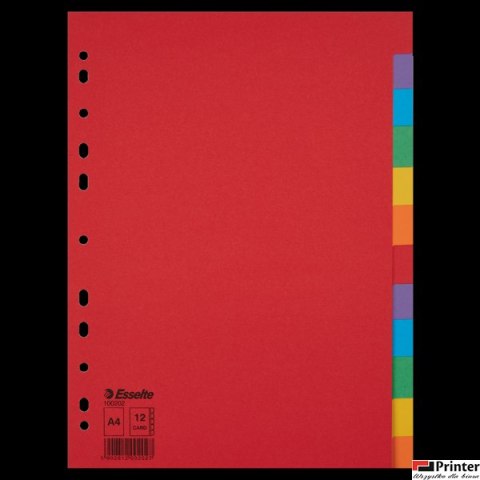 Przekładki karton A4 12 kart ESSELTE 100202 kolorowe bez karty opisowej