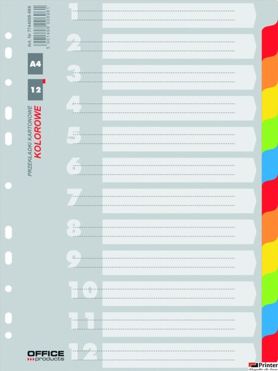 Przekładki , karton, A4, 227x297mm, 12 kart, mix kolorów, typu OFFICE PRODUCTS 21071221-99