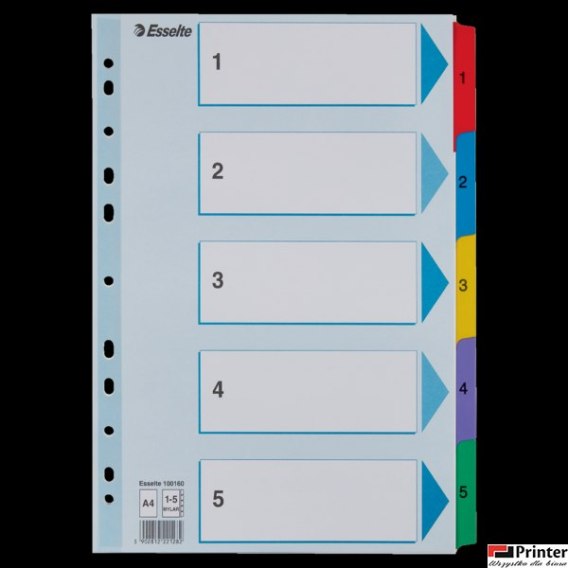 Przekładki kartonowe MYLAR A4 1-5 100160 białe ESSELTE