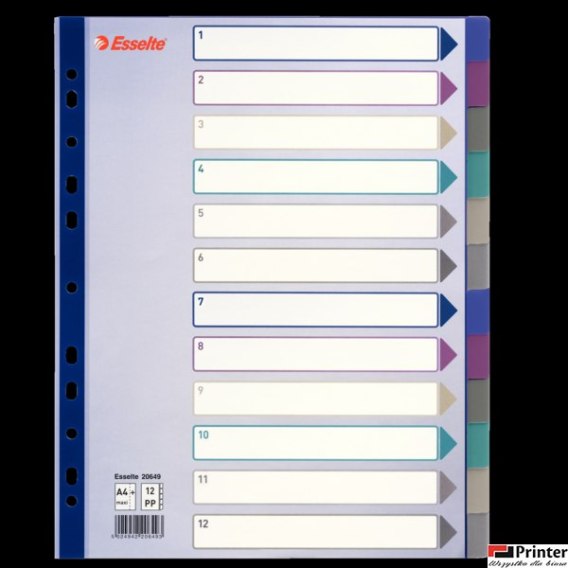 | Nazwa B2B | Przekładki plastikowe Multicolor PP, A4 Maxi - 12 kart ESSELTE |