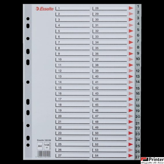 | Katalog_2021naz | Przekładki plastikowe numeryczne A4 1-54 szare ESSELTE 100109 |