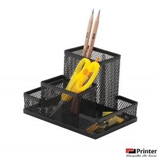 Przybornik na biurko siatka metalowy 4 komory czarny 153x103x100mm KF15112