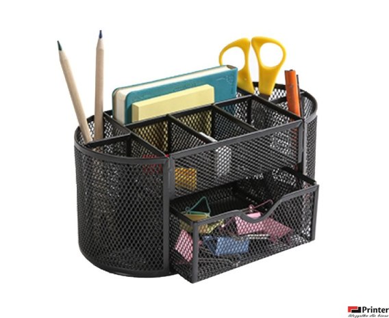 Przybornik na biurko z szufladka siatka czarny KF18472