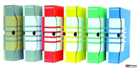 Wykonany z trójwarstwowej tektury falistej, bezkwasowej_typ fali: B_wskaźnik pH = 7,6 wg ZELLCHEMING-Merkblatt V/17/80_gramatura kartonu: ok. 440g/m__pojemność: ok. 800 kartek_mieści segregator_składany _ bardzo prosty w montażu_charakteryzuje się nowoczesnym wzornictwem_specjalny design umożliwia stawianie na krótszym lub dłuższym boku_5 ścian opisowych_posiada 4 otwory:_dwa ułatwiają wyjmowanie dociążonego pudełka z pudła zbiorczego_kolejne dwa pozwalają na wkładanie/wyjmowanie zawartości bez konieczności zdejmowania pudełka z szafy/półki