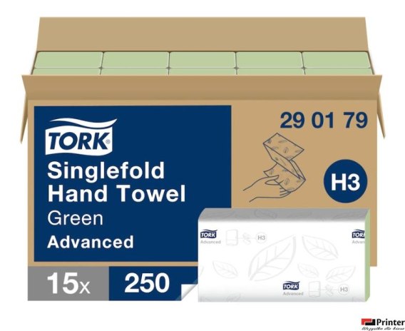 Ręcznik składny Advanced ZZ zielony 2 warstwy 3750 szt./kart H3 TORK 290179, 15x25
