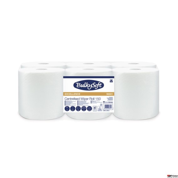 Ręcznik papierowy w roli centralnego dozowania midi BulkySoft Premiumm, 2 warstwy, kolor biały, celuloza, długość 150m, 6 rolek/op.