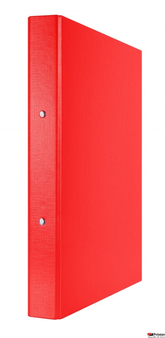 Wykonany z tektury o grubości 1,9mm i gramaturze 1170gsm_posiada Zielony Punkt (Der Gr_ne Punkt) - udział w systemie recyklingu i odzysku odpadów wynikający z przepisów prawa polskiego i UE_pokryty ekologiczną folią polipropylenową (100_m) o strukturze płótna_wewnątrz biała wyklejka papierowa_2-pierścieniowy mechanizm w kształcie litery O_średnica pierścieni: 30mm_szerokość grzbietu: 45mm_wymiary: 45x320x262mm_2 lata gwarancji na mechanizm_kolor czerwony