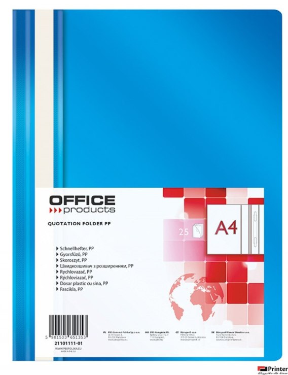 Skoroszyt , PP, A4, miękki, 100/170mikr., niebieski, typu OFFICE PRODUCTS 21101111-01
