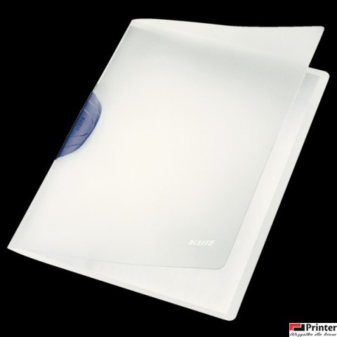 Elegancki skoroszyt do prezentacji ofert, dokumentów i projektów o formacie do A4. Zastosowanie innowacyjnego klipsa umożliwia przechowywanie dokumentów, których nie trzeba dziurkować. Wykonany ze sztywnego PP._Zalety:__ * Całkowicie otwierana przednia okładka umożliwia wygodne czytanie dokumentów_ * Przezroczyste okładki i kolorowy klips_ * Mieści do 30 kartek_ * Format A4