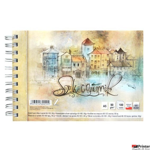 Szkicownik artystyczny A5 100k, na spirali KRESKA