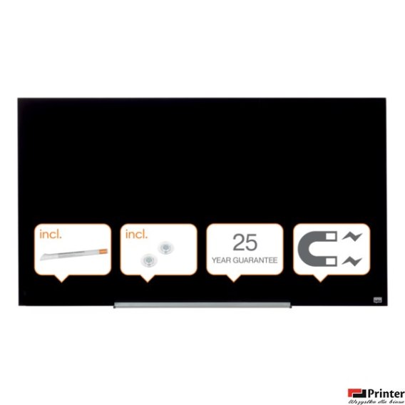 Elegancka i łatwiejsza do wyczyszczenia_z powierzchnią magnetyczną ze szkła hartowanego_odpowiednie do częstego użytku dzięki doskonałej ścieralności i wysokiej odporności na plamy z tuszu, markera oraz zadrapania i wgniecenia_posiadają niewidoczne elementy montażowe_zdejmowana półka na markery_rozmiar: 126,4x71,1 cm_kolor: czarny_gwarancja dożywotnia