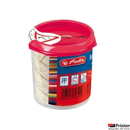 Sznurek PACK-O-MAT 120 m,_- 31/15 kg, w_plastikowym pojemniku z_wieczkiem zamykającym, _- wyposażonym w_nóż odcinający oraz spinacz zapobiegający niepożądanemu rozwinięciu się i_splątaniu sznurka_- Jednostka sprzedazy 1 pojemnik