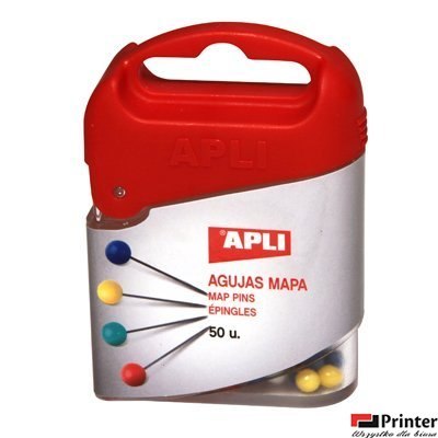 Szpilki kolorowe 50szt.APLI 12348 pudełko plastik