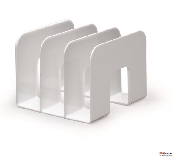 Stojak na katalogi z trzema przedziałami o szerokości 65 mm do większej ilości czasopism lub dokumentów. Wymiary: 215x165x210 mm (SxWxG).