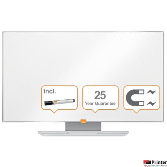 panoramiczny format i nowoczesna rama zapewniają dużą powierzchnię do pisania, a usytuowana pod tablicą pojemna półka na markery nie ingeruje w strefę przeznaczoną do pisania